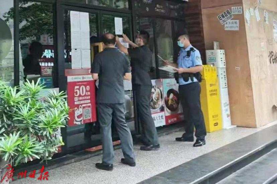 居民先后向城管、环保等多部门投诉举报此事。经过调查,广州市生态环境局对大厦的四家餐饮店铺分别作出环境保护行政处罚,责令其关闭上述地址的餐饮服务项目。